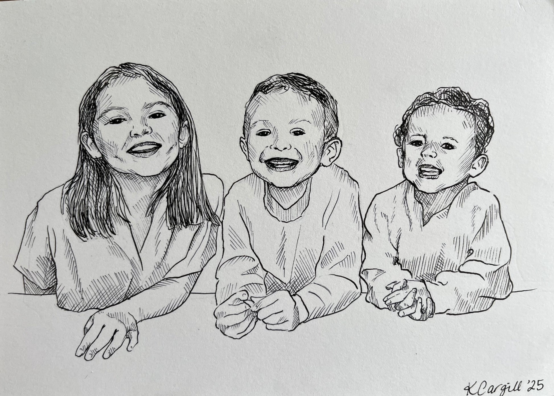 Custom hand drawn portrait of those you love! I will work with you to choose the best photo reference, and send you a sketch to confirm your approval before completing the drawing. Available in 8x10, 11x14, or 16x20.